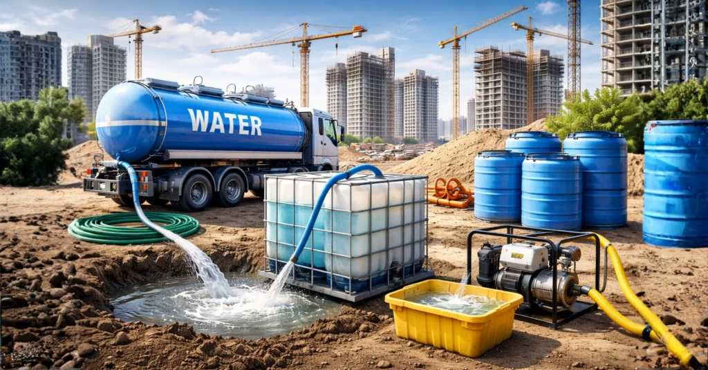 2. Fresh Water: For concrete mixing, cleaning, and operational needs.